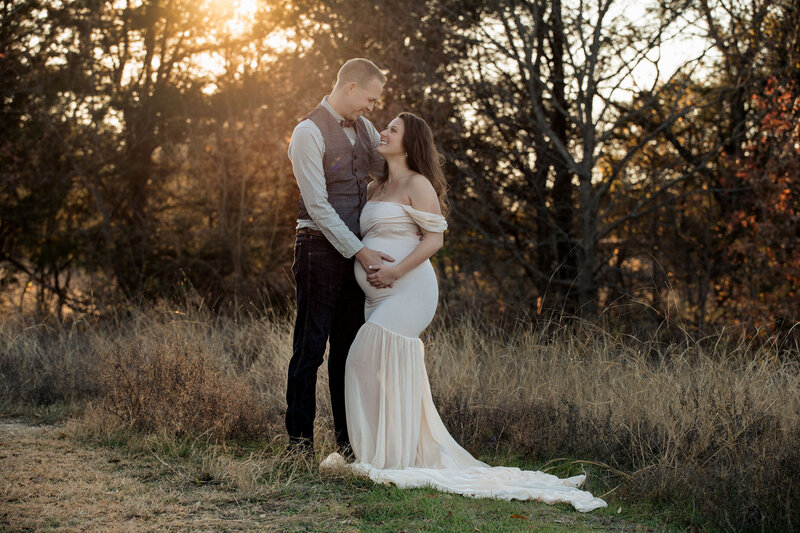 On-location outdoor maternity session at an outdoor location within 15 miles of Wylie TX. Location details will be provided upon booking your session. Includes 15 digital images and 1 dress option from the studio collection or BYO. Makeup for mom is available upon request through our talented makeup artists. Partner and siblings included
