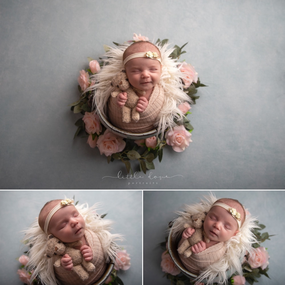 Mama requested flowers, so I got some roses from my prop stash and went with it. I must say this color is one of my favorites for newborn girls!